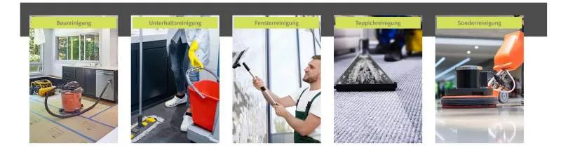 Das Unternehmen bietet Dir: Unterhaltsreinigung, Baureinigung, Teppichreinigung, Fensterreinigung, Glasreinigung, Gebäudereinigung, Sonderreinigung, Fußbodenreinigung, Entsorgung, Bautrocknung, Reinigungsservice.